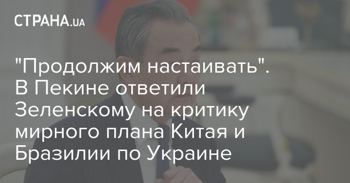 "Продовжимо наполягати". У Пекіні відповіли Зеленському на критику мирного плану Китаю та Бразилії щодо України