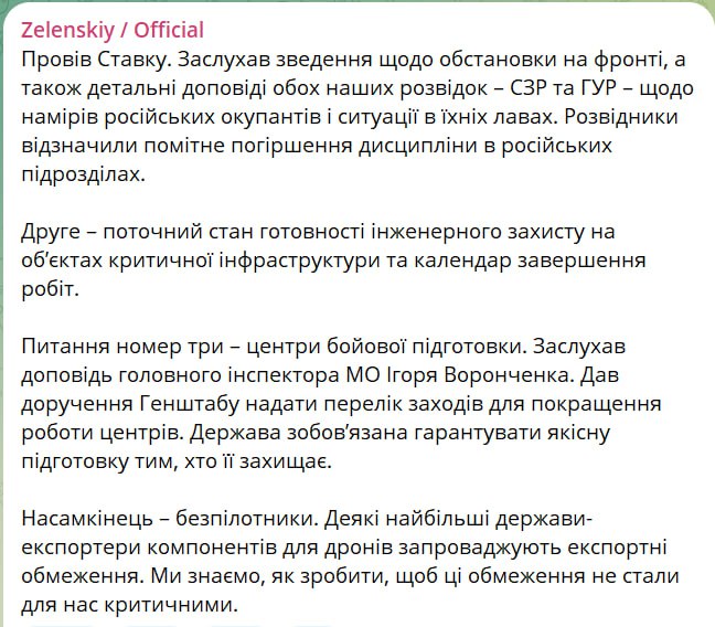 Зеленський заявив про обмеження Китаю на постачання дронів Україні та доручив покращити підготовку у підручках ЗСУ
