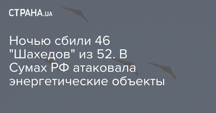 Вночі збили 46 "Шахедів" із 52. У Сумах РФ атакувала енергетичні об'єкти