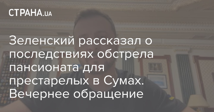Зеленський розповів про наслідки обстрілу пансіонату для літніх людей у Сумах. Вечірнє звернення