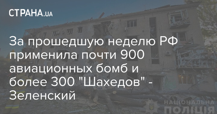 "Усього лише за один цей тиждень російська армія застосувала майже 900 авіаційних бомб, понад 300 "Шахедів" і понад 40 ракет. Цей російський терор не знає пауз, і його можна зупинити лише єдністю світу – єдністю у підтримці України та єдністю тиску на Росію за війну", - написав президент.