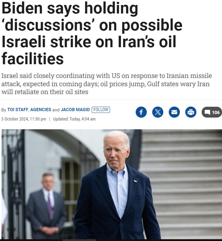 Байден заявив, що Ізраїль ще не вибрав мети для удару по Ірану