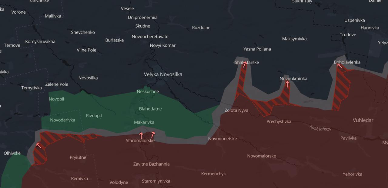 На північ від Вугледару росіяни увійшли до Богоявленки, а на захід від Великої Новосілки захопили Левадне (Врем'ївський виступ, Запорізька область).