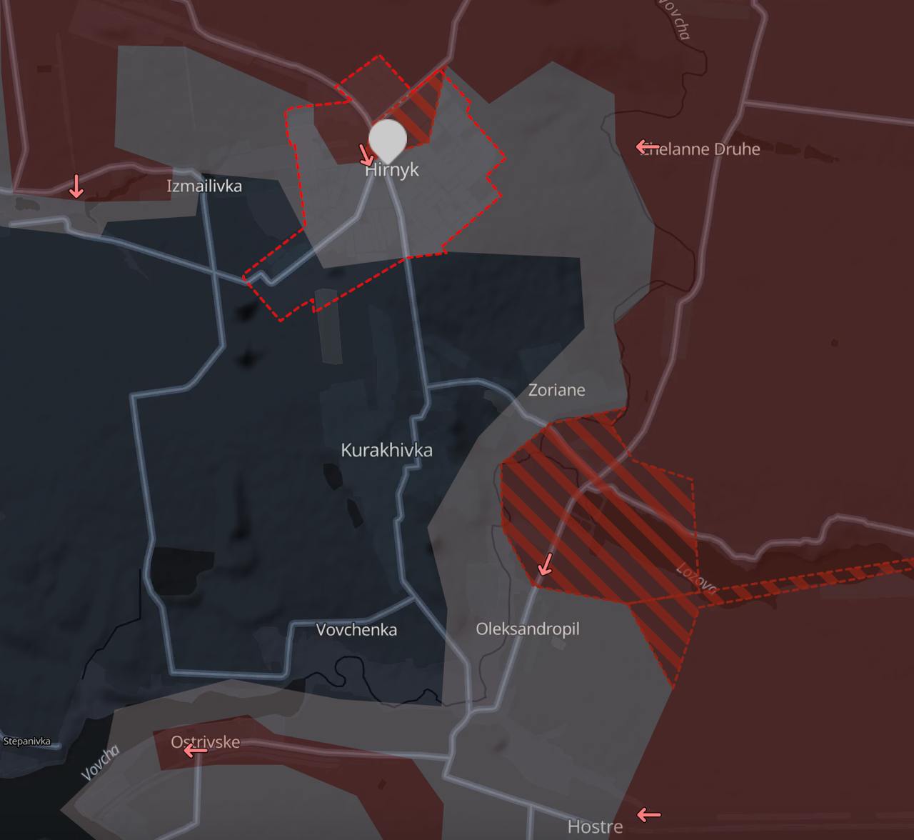Згідно з картою військового пабліка Deep State, Гірника захоплено наполовину, решта в "сірій зоні". При цьому паблік підтверджує дані про просування РФ в районі Олександрополя на південь від Курахівки (українські військові повідомляли, що все селище втрачено).