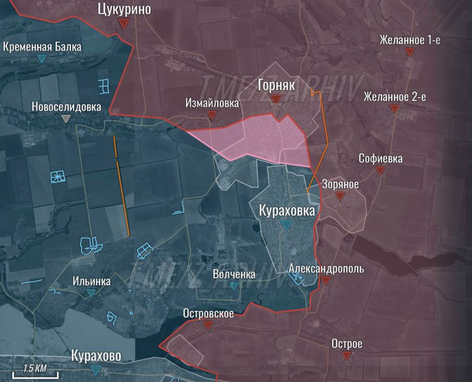 Південніше російські війська, зважаючи на все, захопили місто Гірник, сусідню з ним Ізмайлівку і розпочали штурм Курахівки - населеного пункту на південь від Гірника і на північний схід від Курахового. Це підтверджують і українські військові.