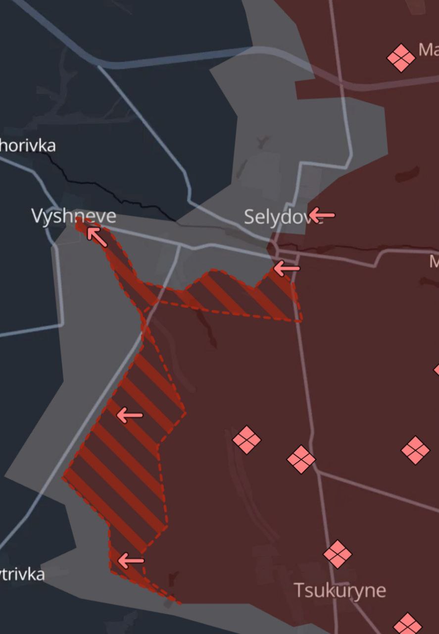 По-перше, навколо міста Селидове. Російські війська прорвалися до села Вишневого на захід від міста, перерізали частину комунікацій, що йдуть звідти, а також поставили під прямий обстріл дорогу на Покровськ. Селидово опинилося під загрозою оточення.
