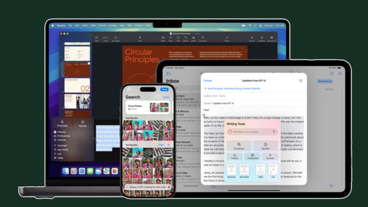 ІІ доступний на iPhone, iPad та Mac-буках. Він представлений помічником для написання і редагування текстів, "балакучішою" запитально-відповідною системою Siri, яка тепер краще орієнтується в контексті вимовляється людиною, "розумний" пошук по фотографіях і покращену систему повідомлень.