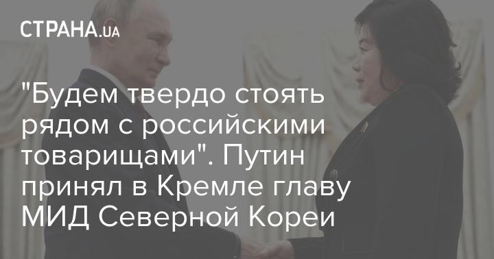 Російський лідер Володимир Путін прийняв у Кремлі міністра закордонних справ КНДР Цой Сон Хі, яка пообіцяла, що Північна Корея "твердо стоятиме поряд із російськими товаришами".