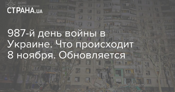 У п'ятницю, 8 листопада, в Україні триває 987-й день війни з Росією.