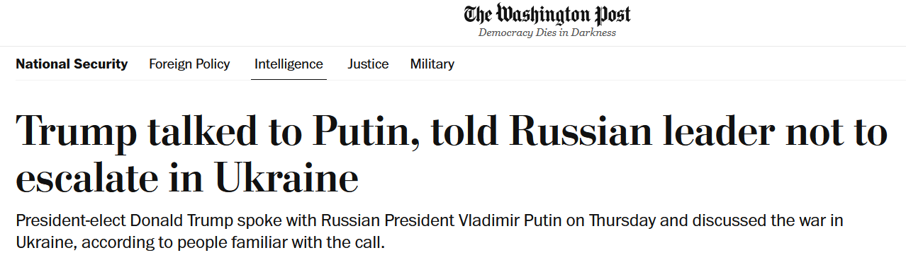 Зазначимо, що Путін якраз 7 листопада вперше привітав Трампа з перемогою на виборах і заявив, що готовий розглядати його пропозиції щодо України.