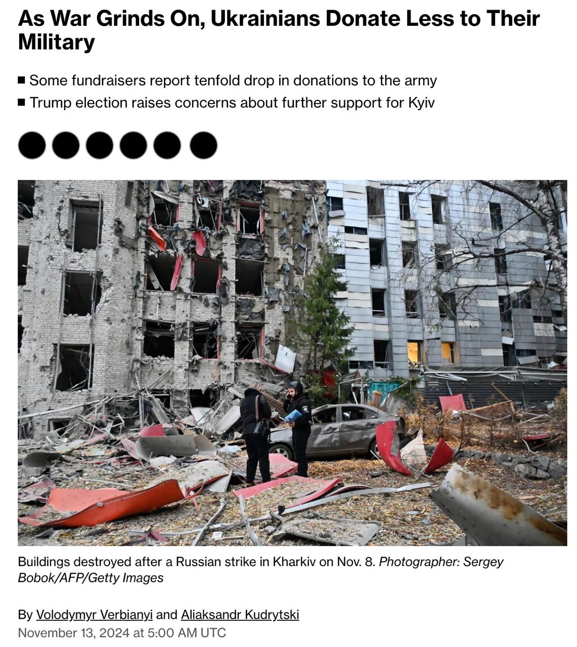 А військові ще влітку 2023 року спостерігали падіння ентузіазму серед жертводавців. Військовий, який збирав донати для свого підрозділу, розповів західному виданню, що пожертвування на потреби Збройних сил знижуються, збір коштів в інтернеті ще на початку 2023 року "перестав бути ефективним".