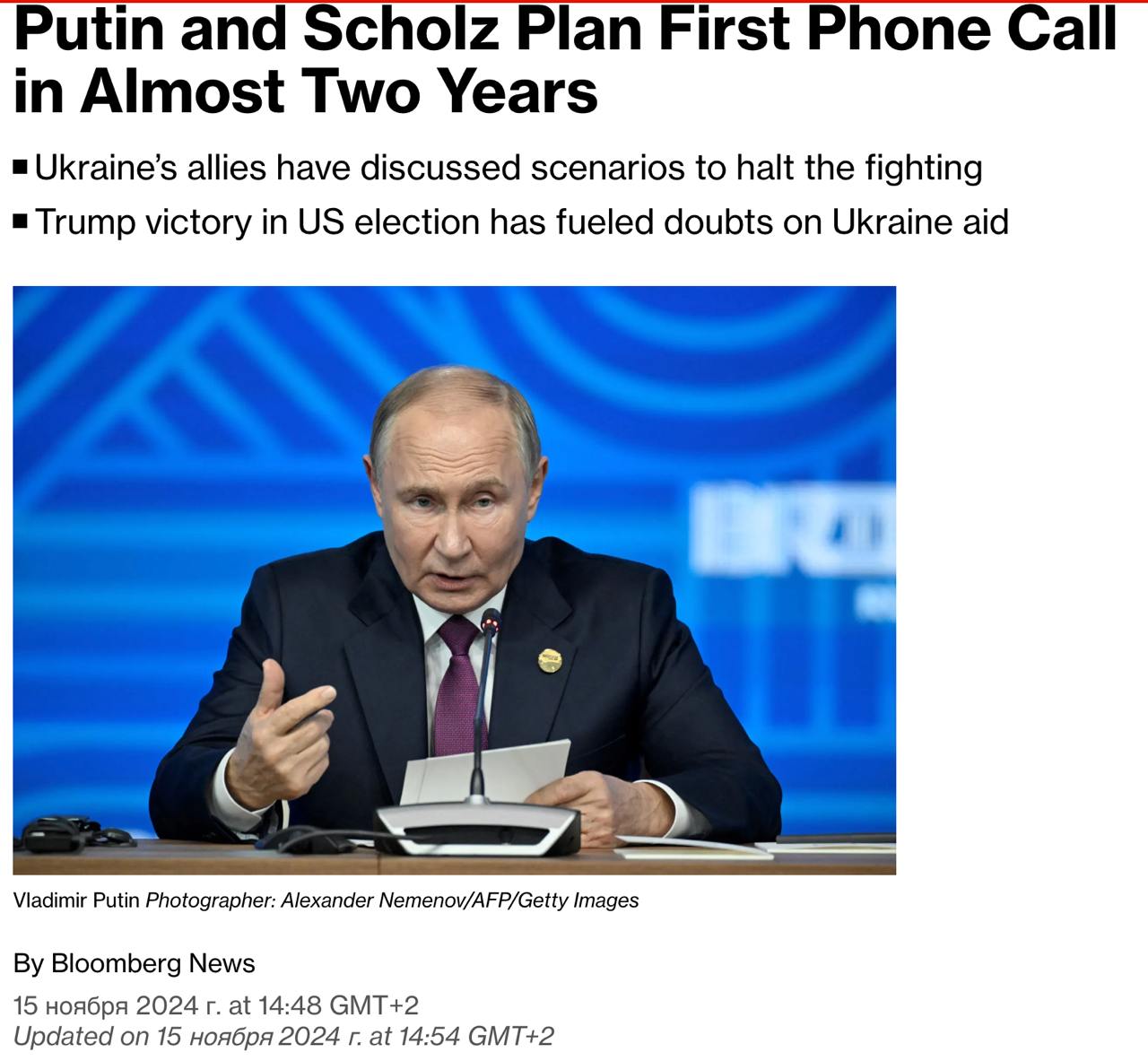 11 листопада канцлер ФРН заявляв, що збирається "невдовзі" провести перші переговори з Путіним.
