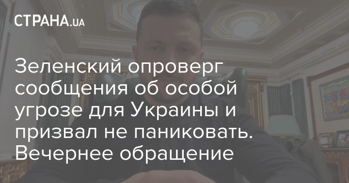 Зеленський спростував повідомлення про особливу загрозу для України та закликав не панікувати. Вечірнє звернення