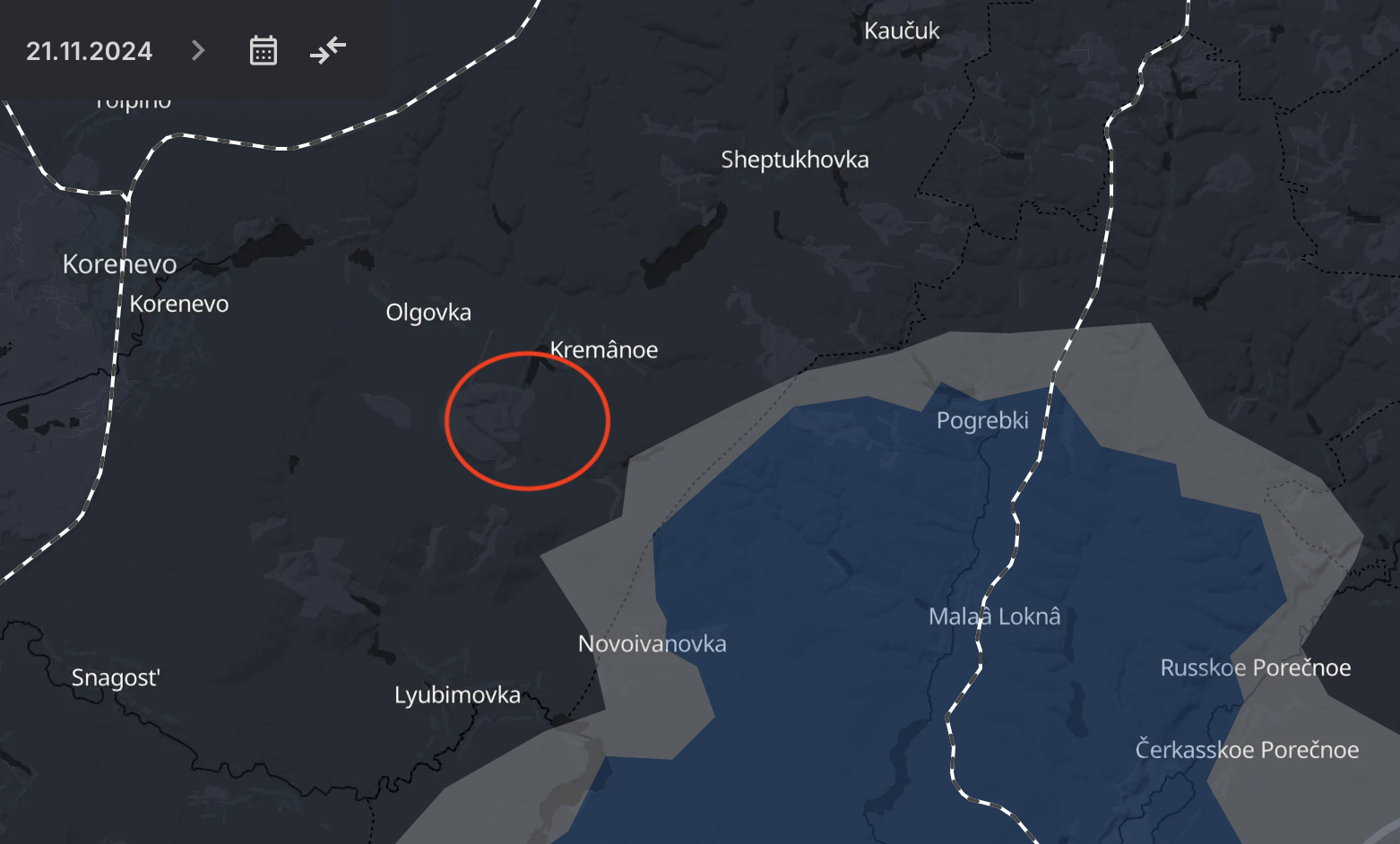 На Курщині російські війська відбили великий Ольговський ліс. Про це свідчить мапа українського військового паблика Deep State.