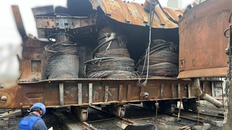 Постраждалий від удару трансформатор. Фото: facebook.com/npcukrenergo