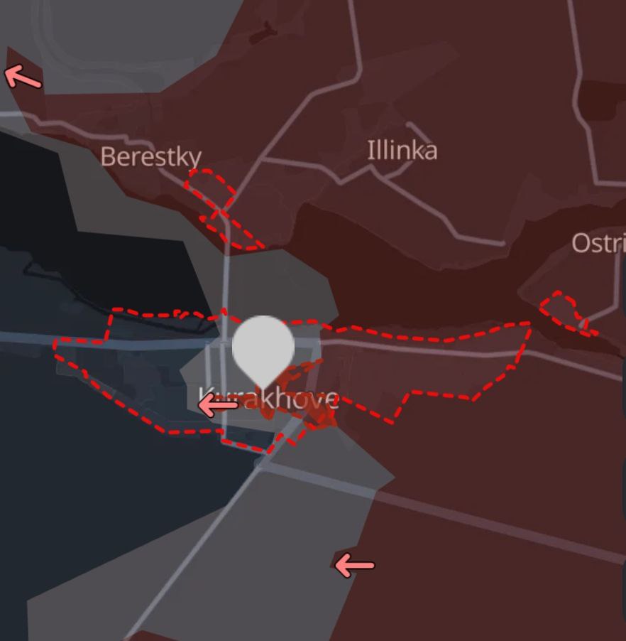 У Кураховому вони пройшли центральною частиною міста, збільшивши зону свого контролю. Більшість Курахово, судячи з карти, вже перебуває під РФ.