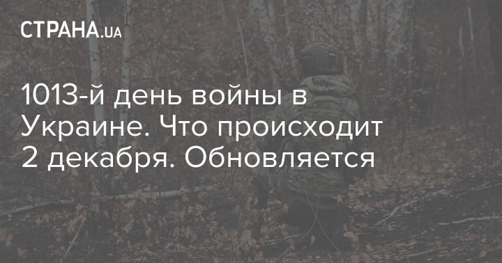 У понеділок, 2 грудня, в Україні триває 1013-й день війни з Росією.