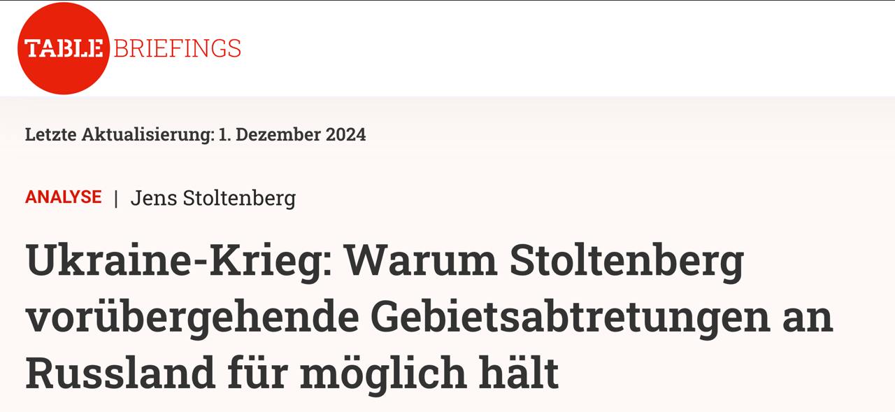 "Якщо лінія припинення вогню означає, що Росія продовжує контролювати всі окуповані території, це не означає, що Україна має назавжди відмовитись від цих територій", - заявив Столтенберг в інтерв'ю Table.
