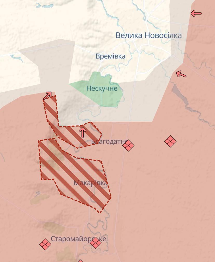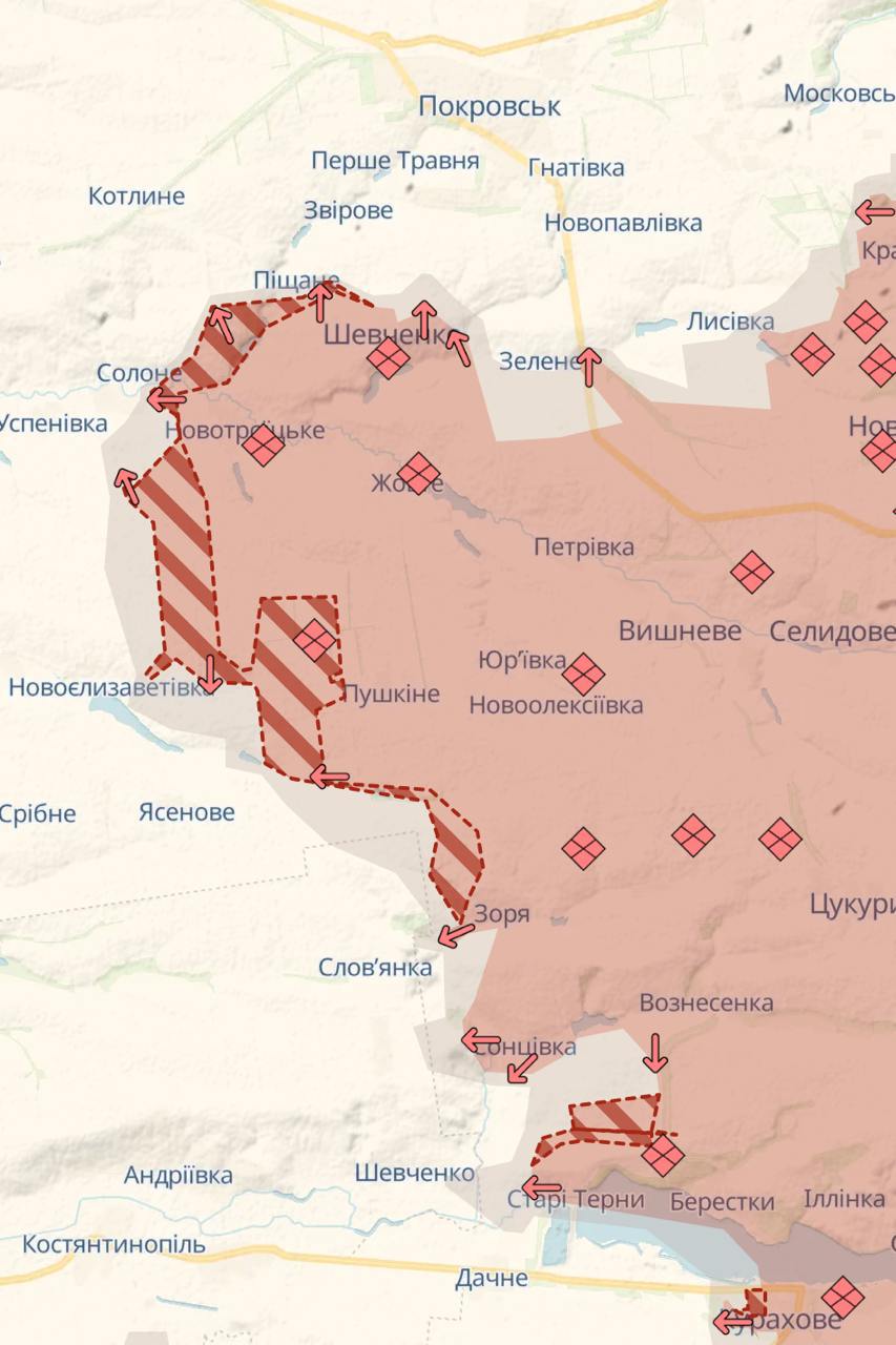 Також армія РФ просунулась у Курахово та під Покровськом. Зокрема, захоплено села Зеленівка та Сухі Яли під Кураховим.