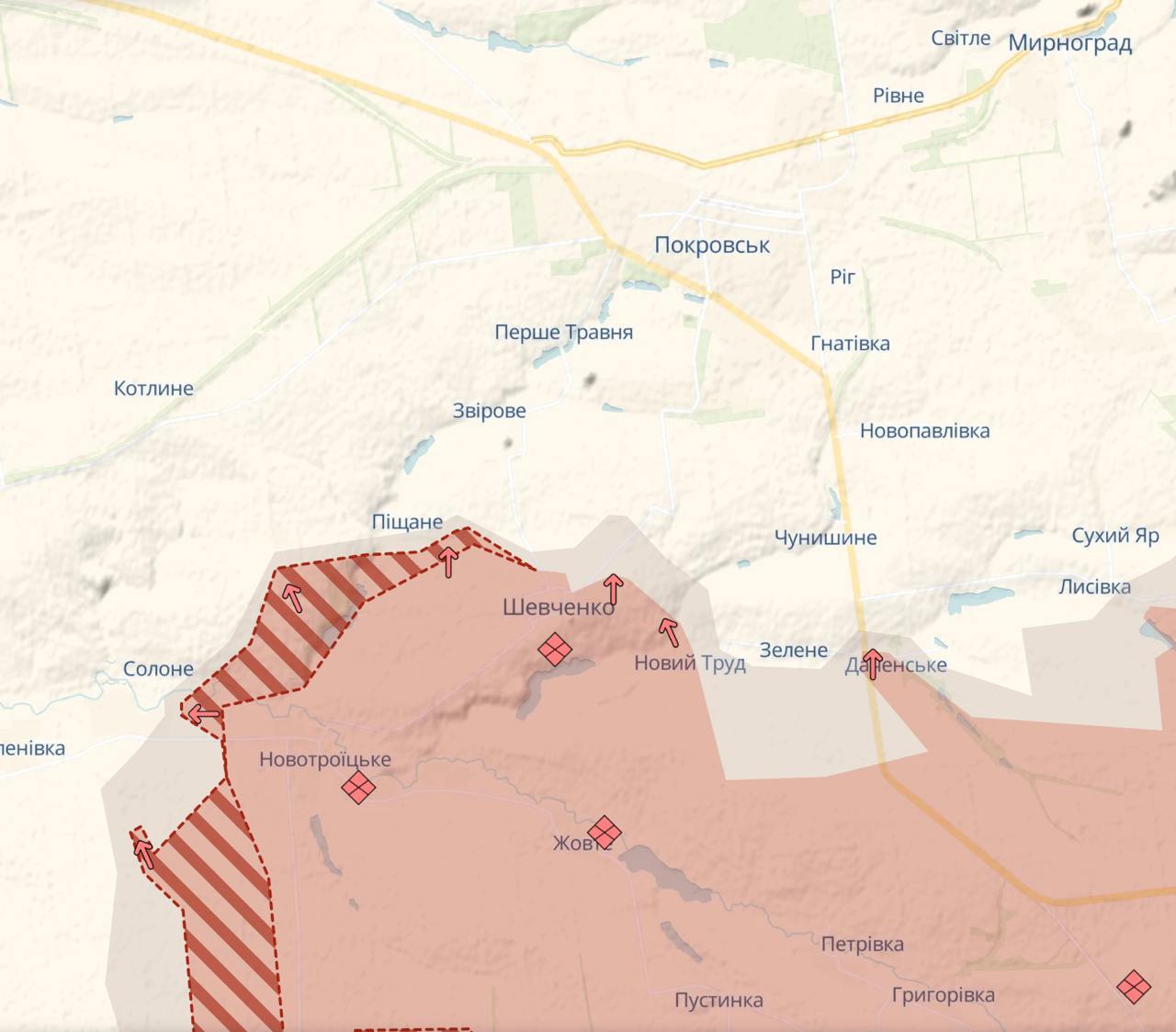 Під Покровським просування на околиці Піщаного і по всьому фронту на південь від Курахового.
