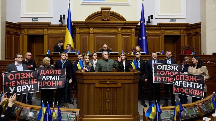 Костенко (на трибуні) проти ідеї відправляти депутатів на фронт. Фото: facebook.com/kostenko.roman83