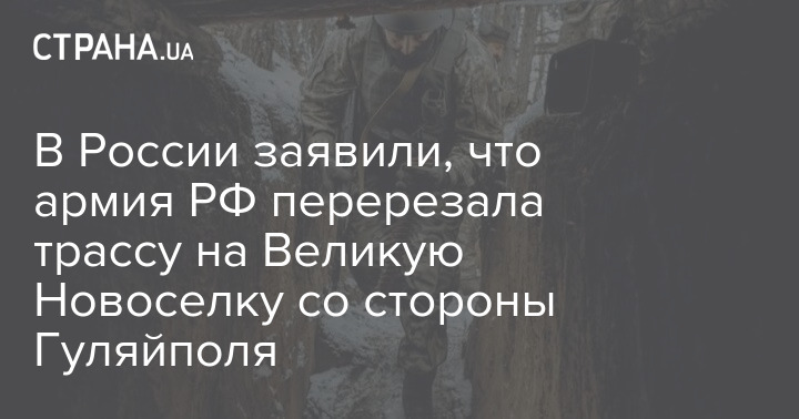 Російські телеграм-канали заявляють, що війська РФ перерізали трасу на Велику Новоселку з боку Гуляйполя і захопили ряд опорників на північ від дороги.