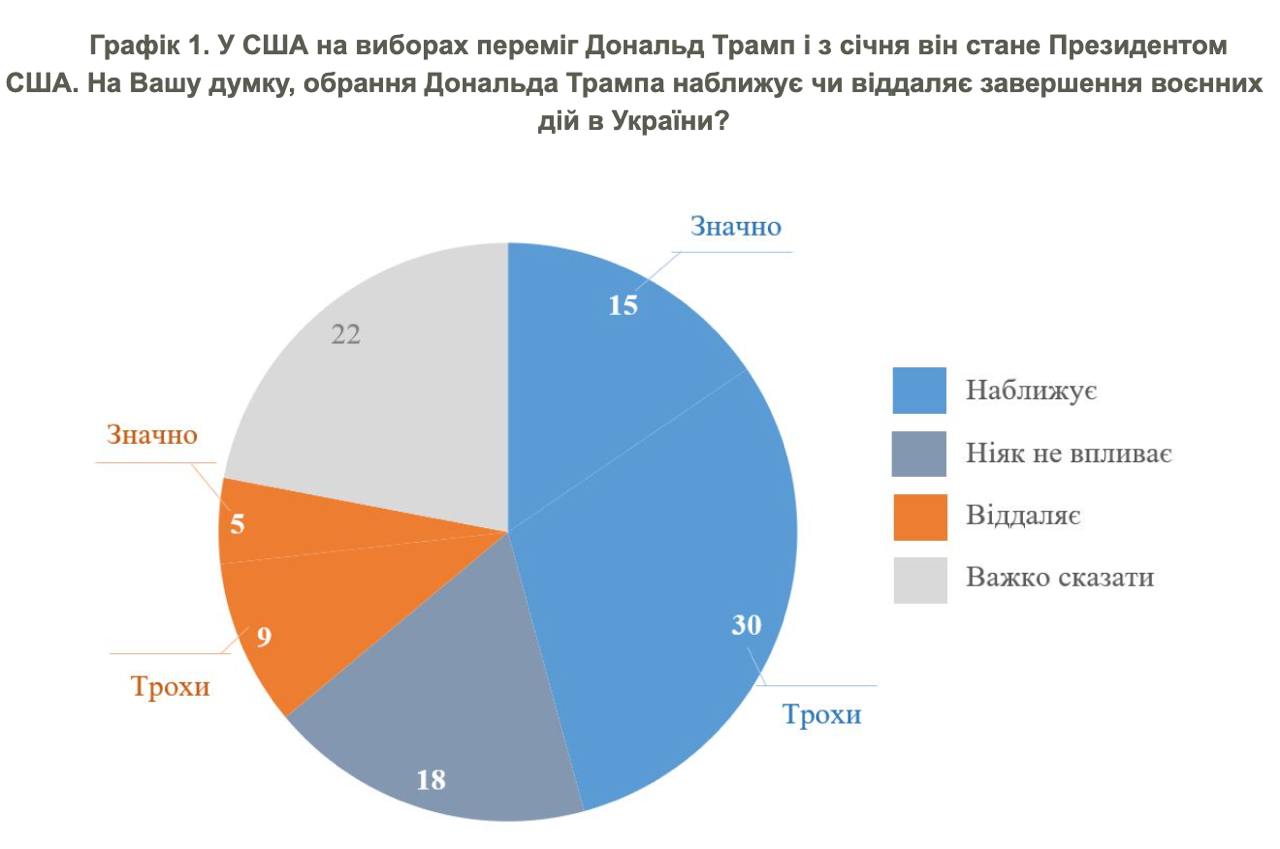 Українці вважають, що Трамп наближає світ, який буде більш менш справедливим для України, свідчить опитування КМІС. 45% опитаних заявили, що перемога республіканця наближає світ, 14% вважають навпаки, 22% важко відповісти.