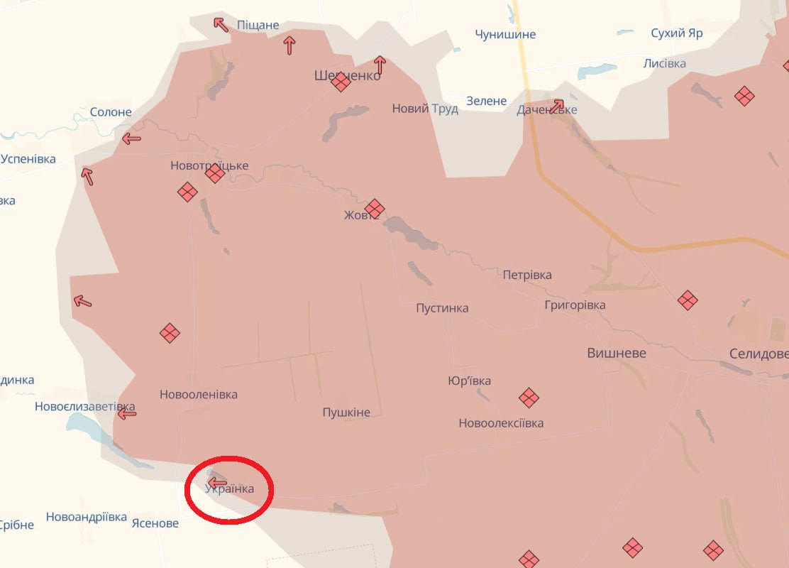 Армія РФ захопила село Українка на південному фасі фронту біля Покровська, повідомляє Deep State.