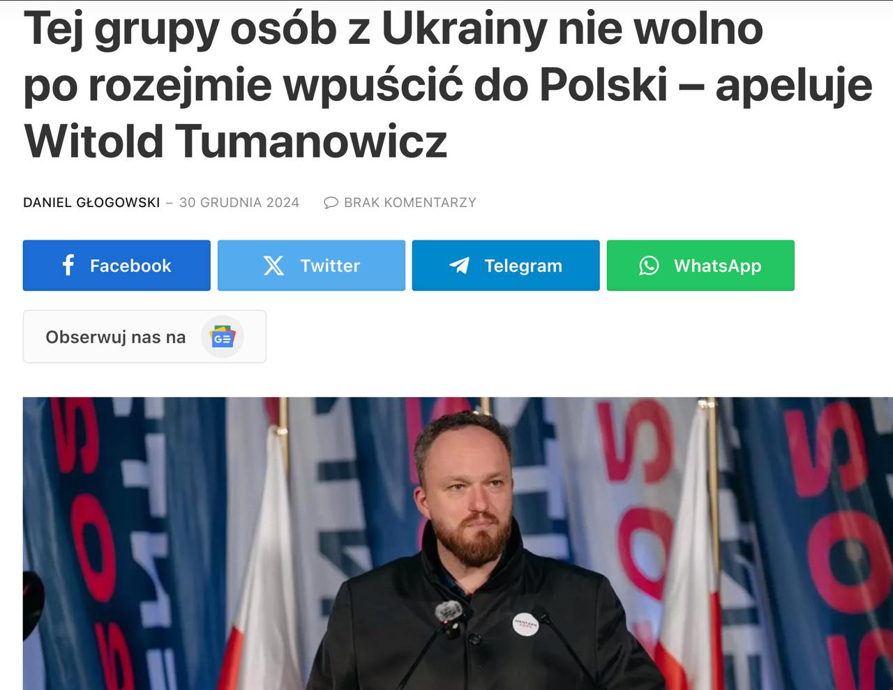 На цьому наголосив депутат Конфедерації Вітольд Туманович в ефірі Polsat News.