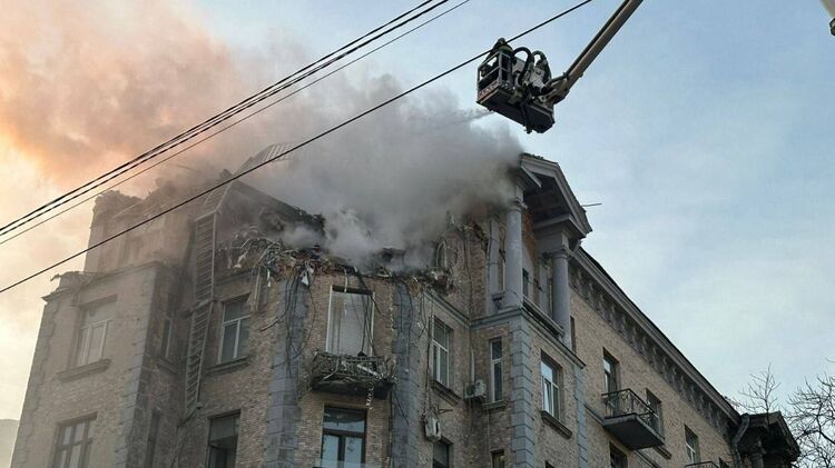 Так, за його словами, у житловому будинку в Печерському районі частково зруйновано два верхні поверхи, пошкоджено і нежитлову будівлю.