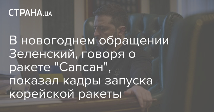 Кадри з новорічного звернення президента України Володимира Зеленського, в яких він говорить про українську балістичну ракету "Сапсан", є відеозаписами запуску південнокорейських ракет.