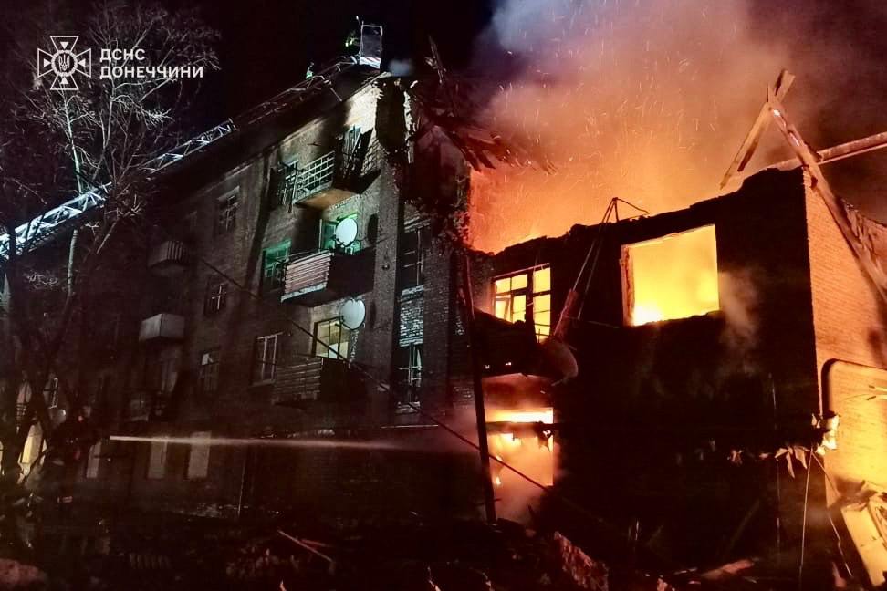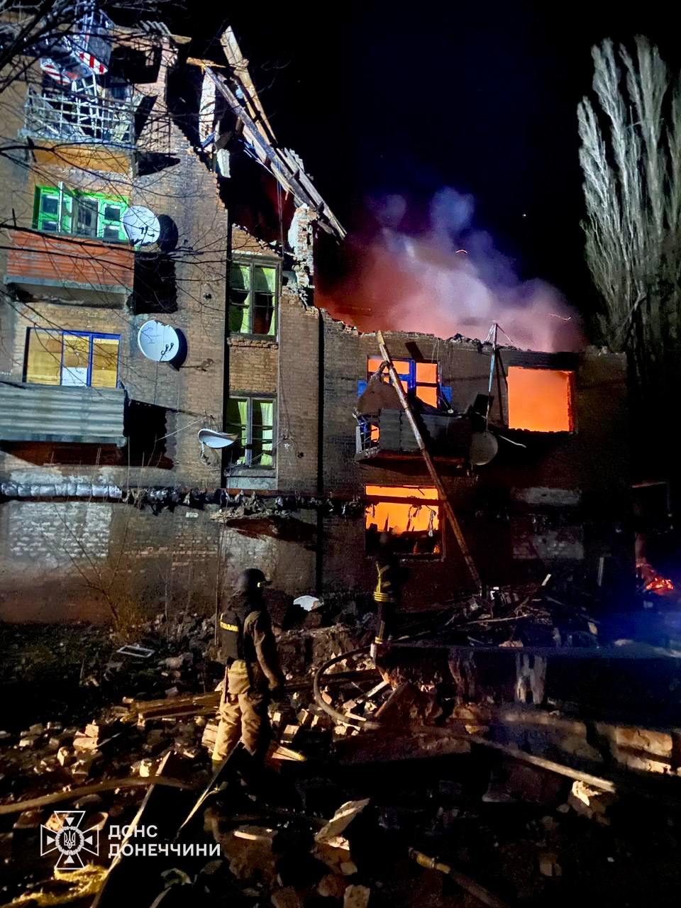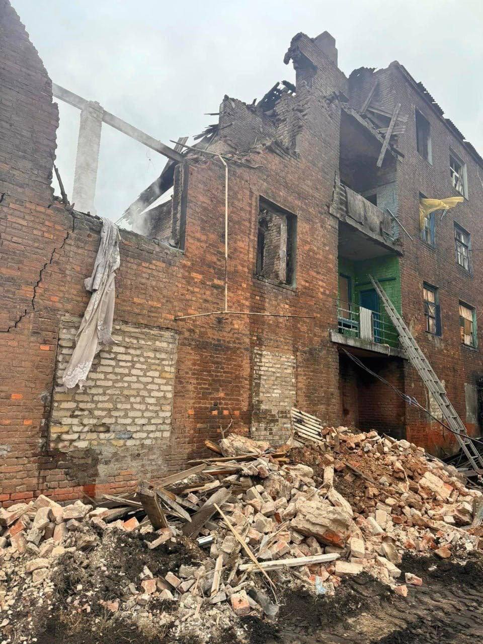 11:05 У Краматорську внаслідок нічного удару зруйновано під'їзд чотириповерхівки з четвертого до другого поверху, повідомляє ДСНС.