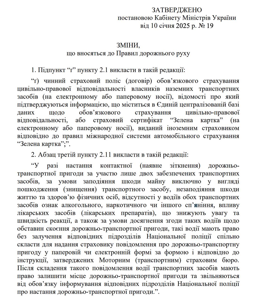 Кабінет міністрів України дозволив водіям не повідомляти поліцію про ДТП, якщо в ньому постраждали тільки транспортні засоби.