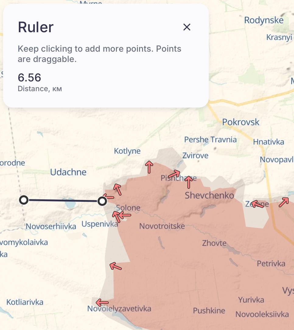 Фронт учора максимально наблизився до Дніпропетровської області з боку Вдалого на південний захід від Покровська.