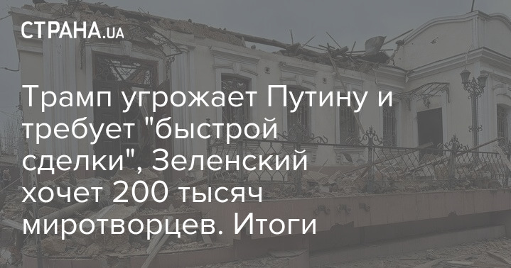 "Я збираюся зробити для Росії, чия економіка зазнає краху, і для президента Путіна дуже велика послуга. Давайте укладемо угоду зараз і зупинимо цю безглузду війну! Далі буде тільки гірше. Якщо ми не досягнемо угоди найближчим часом, у мене не залишиться. іншого вибору, окрім як запровадити високі податки, тарифи та санкції на все, що Росія продає до Сполучених Штатів та інших країн, які беруть участь у цьому процесі", - написав Трамп у себе в соцмережі.