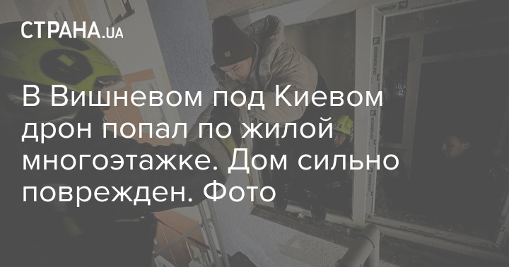 У Вишневому під Києвом дрон потрапив житловою багатоповерхівкою. Будинок дуже пошкоджений. Фото