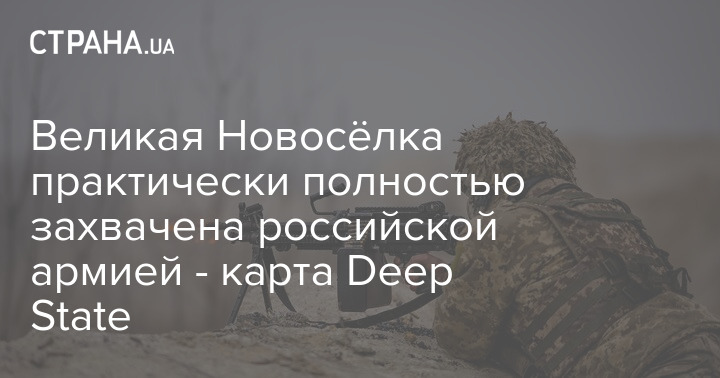 Селище Велика Новосілка на Донеччині практично повністю захоплене російською армією. Про це свідчить мапа українського військового пабліка Deep State.