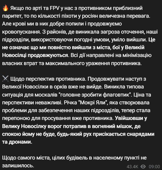 Російські пабліки відучора заявляють про повне захоплення Великої Новосілки.