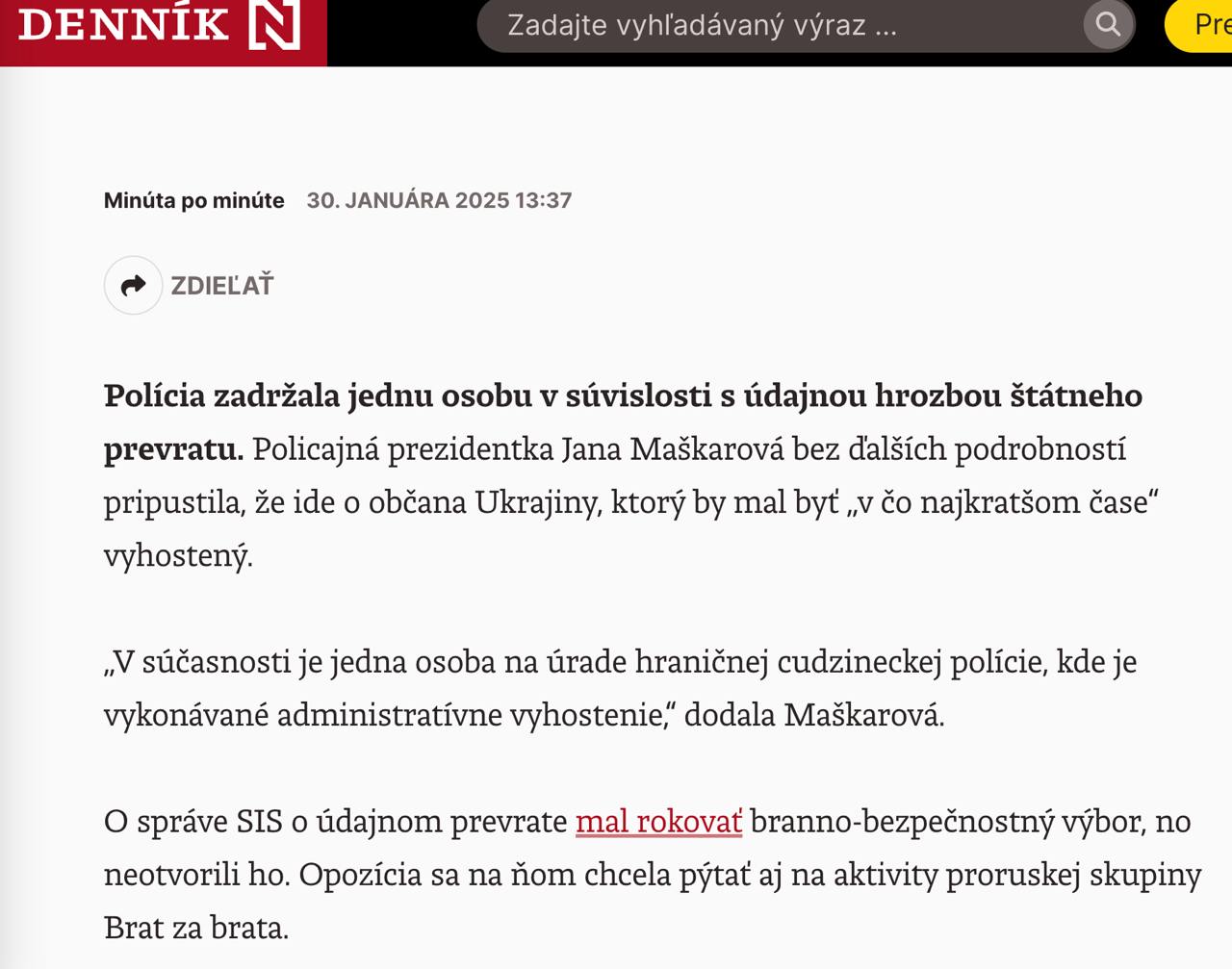 А депутат від опозиції Юрай Крула вважає, що інформація про затримання громадянина України може бути сфабрикованою, оскільки переворот готують за умов підвищеної таємності.