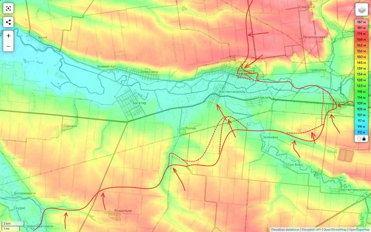 І російські, і українські військові телеграм-канали також пишуть про інтенсивні штурми Константинополя з півдня з періодичним "заскоком" піхоти супротивника на околиці села.