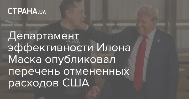 Департамент ефективності державного управління (DOGE), очолюваний Ілоном Маском, опублікував перелік видатків США, які були ним скасовані.