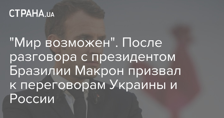 "Щойно розмовляв із президентом Лулою (президент Бразилії Лула да Сілва - Ред. ). Ми разом віримо, що миру в Україні можна досягти лише шляхом переговорів, об'єднавши Росію та Україну за одним столом. Світ можливий, і міжнародне співтовариство має мобілізуватися", - заявив президент Франції.