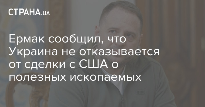 Єрмак повідомив, що Україна не відмовляється від угоди зі США щодо корисних копалин.