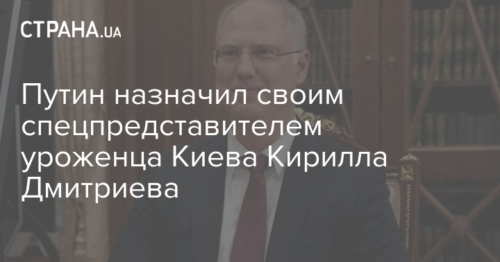 Російський лідер Володимир Путін призначив уродженця Києва, голову Російського фонду прямих інвестицій Кирила Дмитрієва спецпредставником президента з інвестиційно-економічного співробітництва із зарубіжними країнами.