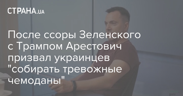 Після публічної сварки президента України Володимира Зеленського з главою США Дональдом Трампом колишній радник Банкової Олексій Арестович закликав мешканців підконтрольних Києву територій "збирати тривожні валізки".