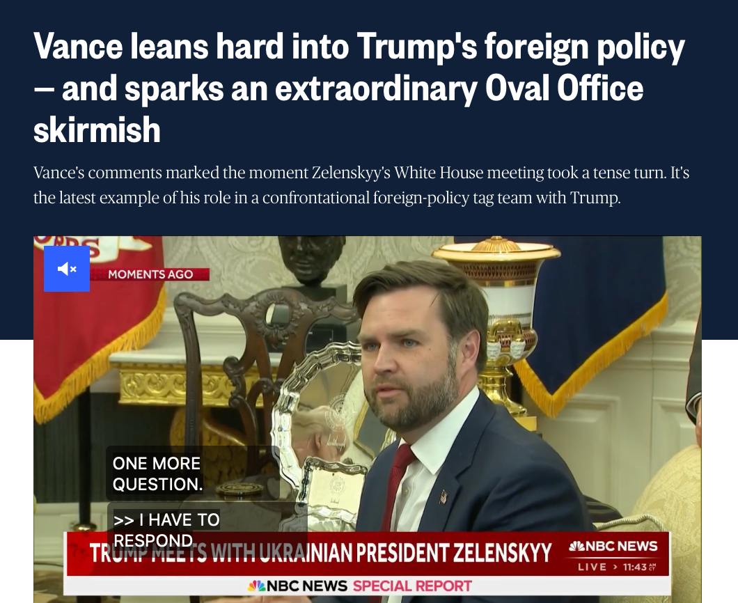 Конфлікт президента України Володимира Зеленського з віце-президентом Джей Ді Венсом, з якого почалася суперечка в Овальному кабінеті за участю президента США Дональда Трампа, був спонтанним.