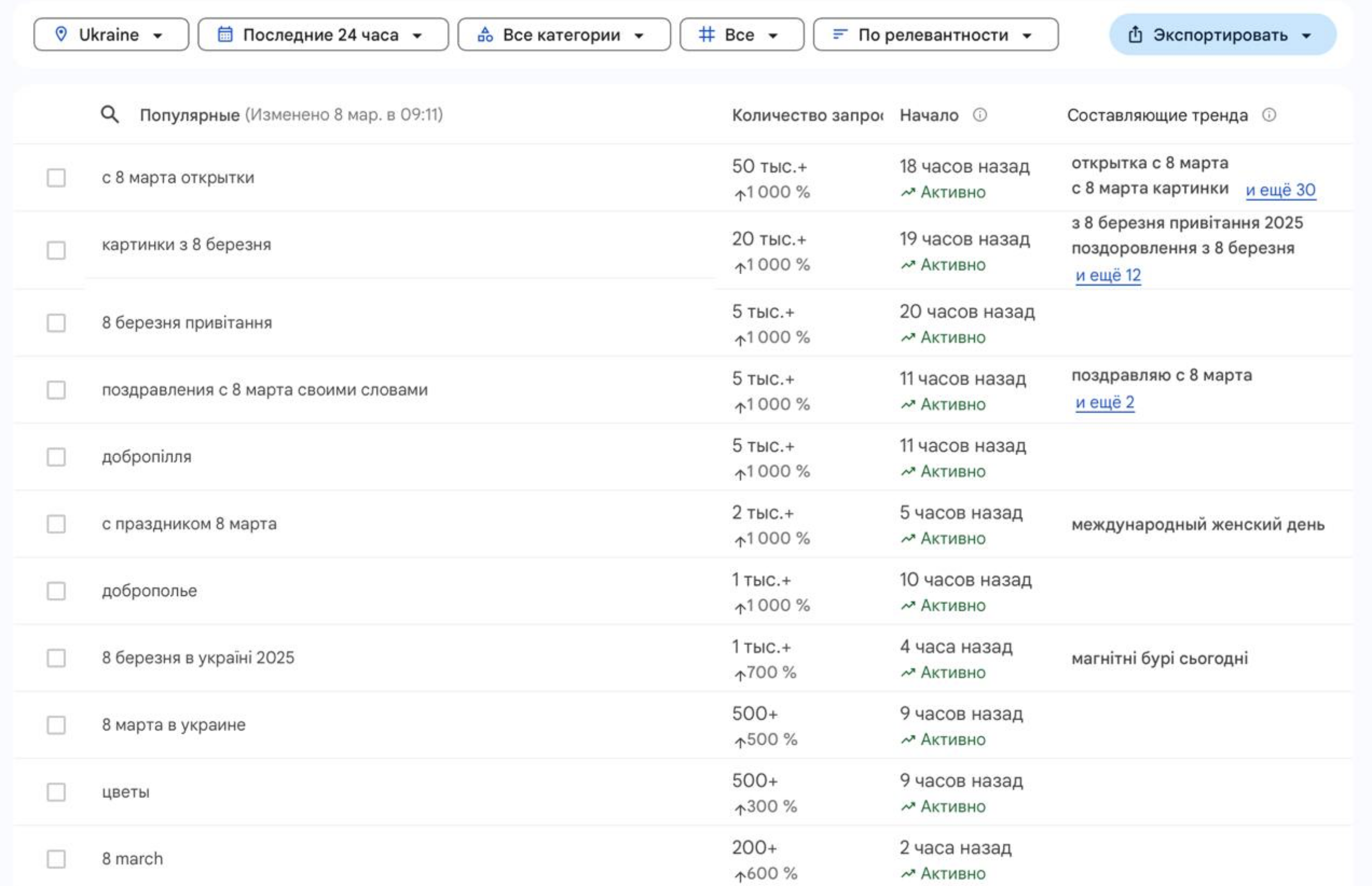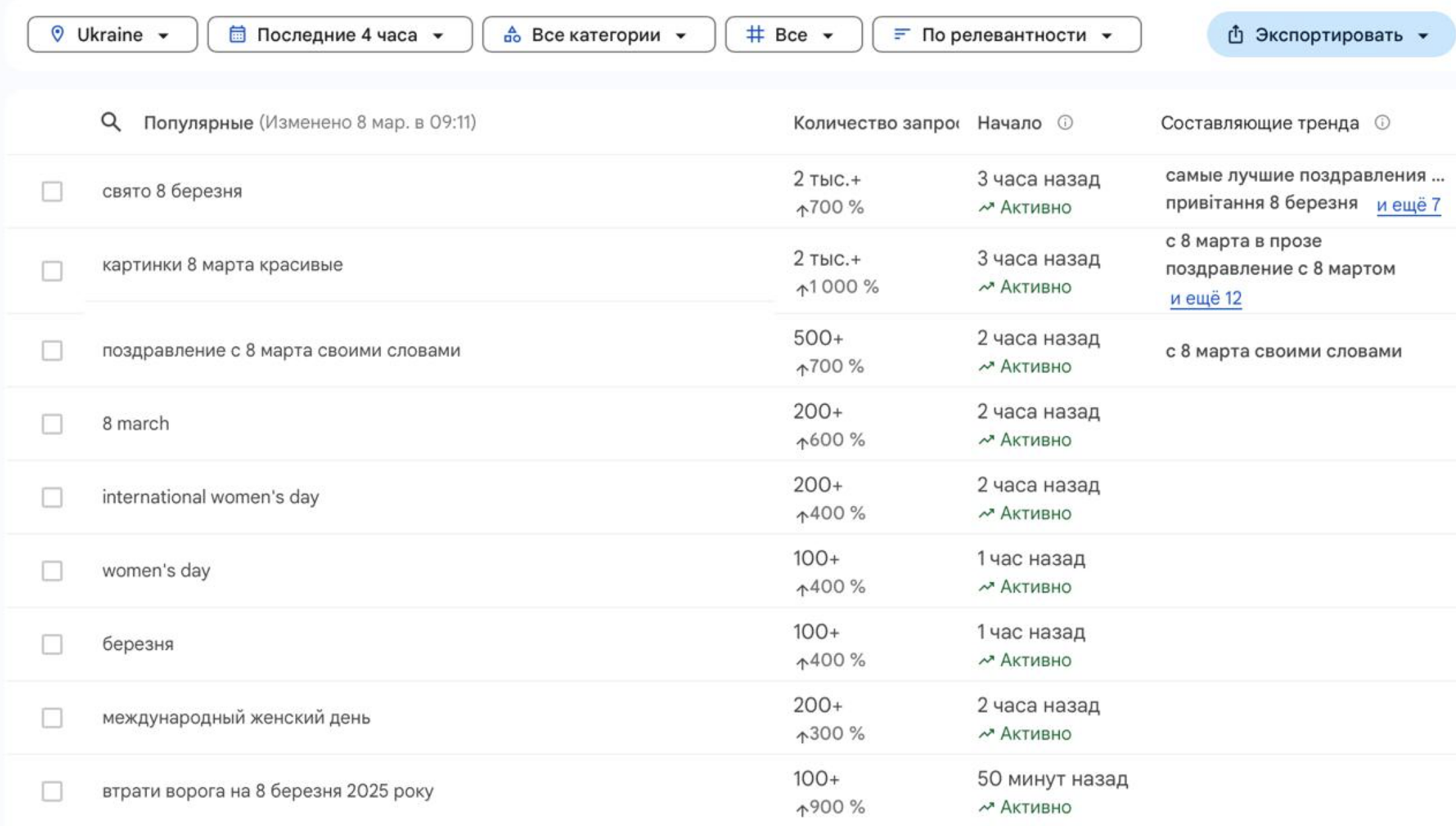 Українці сьогодні масово шукають у Google вітання з 8 березня.
