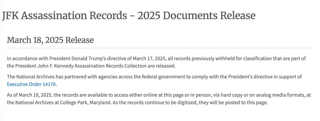 Нагадаємо, у січні Трамп підписав указ про розсекречення документів щодо вбивств Кеннеді, його брата Роберта Кеннеді та баптистського проповідника, громадського діяча та активіста, лауреата Нобелівської премії миру Мартіна Лютера Кінга.