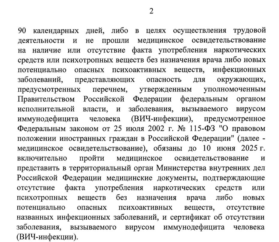 Іноземні громадяни, які перебувають на захоплених РФ територіях України, зобов'язані до 10 червня підтвердити відсутність ВІЛ та невживання наркотиків, випливає з того ж указу Путіна.