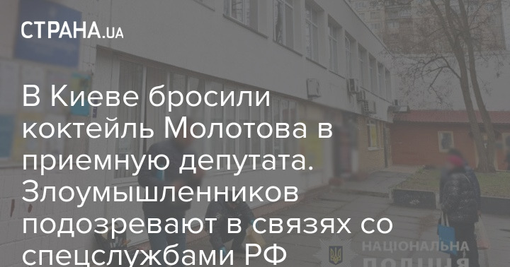 У Києві кинули коктейль Молотова до приймальні депутата. Зловмисників підозрюють у зв'язках зі спецслужбами РФ